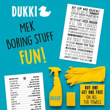 'Daily dose of Bogger Talk' phrase, 'Colour Friday' flat-lay and a Tea towel promo. Designed to increase brand engagement on Facebook and Instagram.